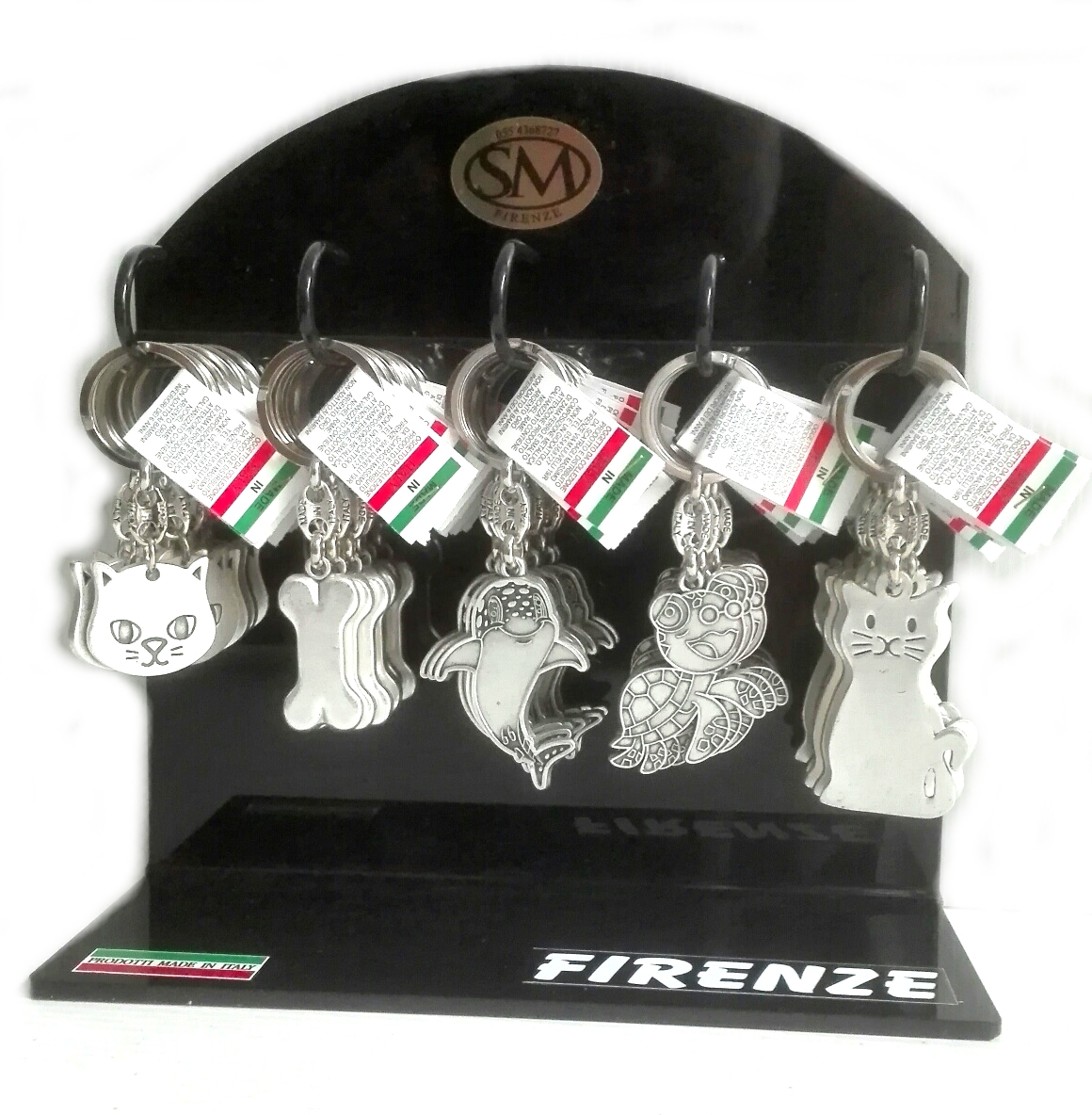 EXPO07 Espositore con 50 Portachiavi assortiti in Argento Vecchio Scontornati