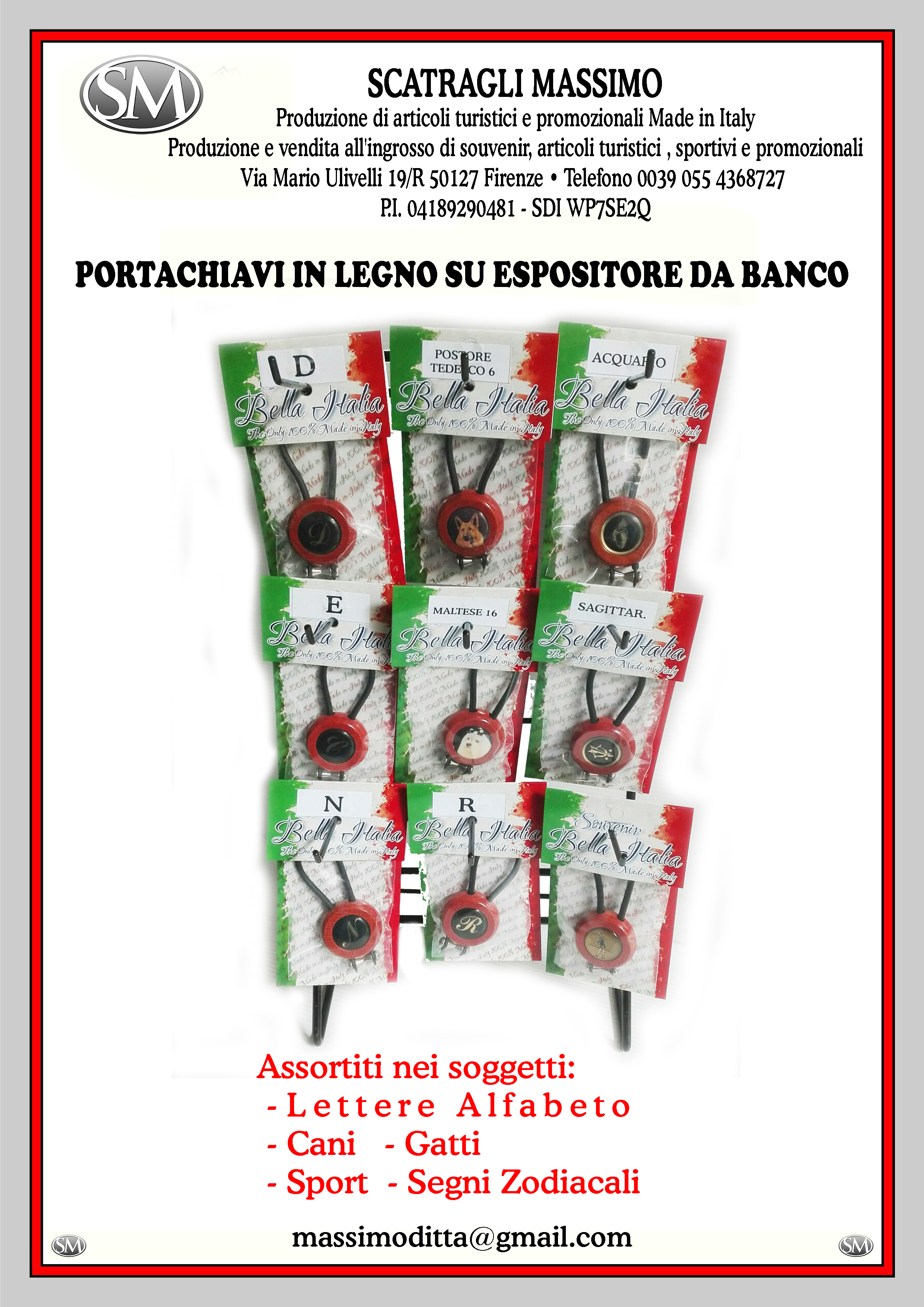 EXPO08 Espositore con 90 Portachiavi assortiti in Legno